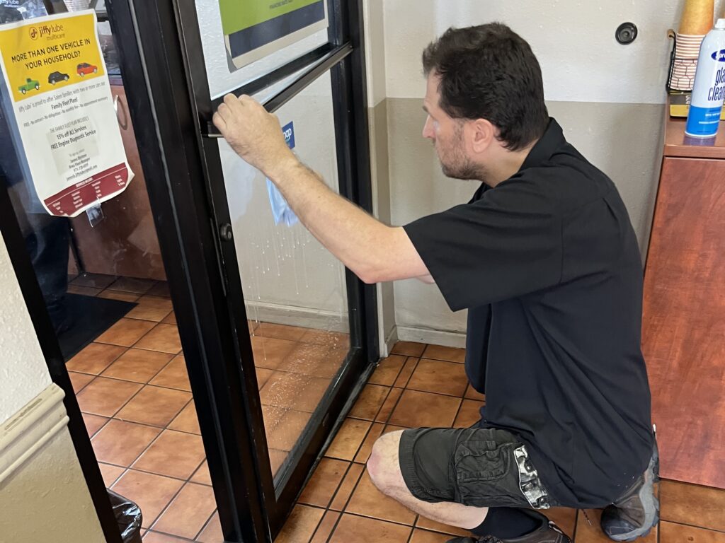 Today, Chris’s responsibilities range from vacuuming and tidying up the shop to washing windows and keeping the customer area spotless. Recently, he’s even started learning how to put oil in cars—something he’s proud to add to his list of skills.